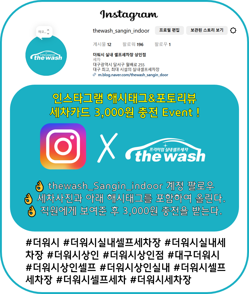 ☞ 인스타그램 후기 작성 시 세차카드 3,000원 충전